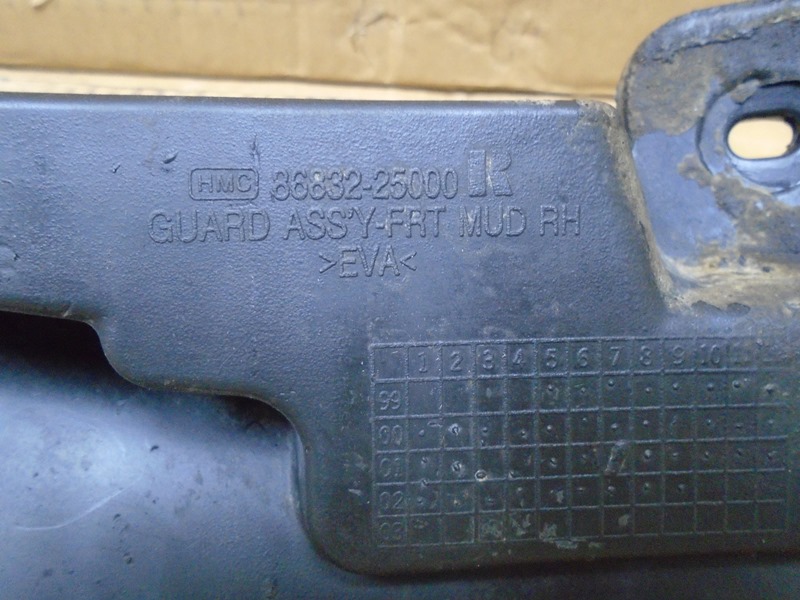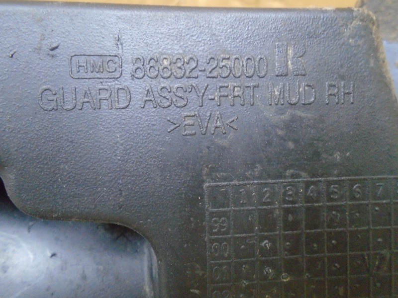 Hyundai Accent ТАГАЗ брызговик передний правый б/у. Корея. Оригинальный номер 8683225000 / 86832-25000 / 86832 25000 . 2000-2012.