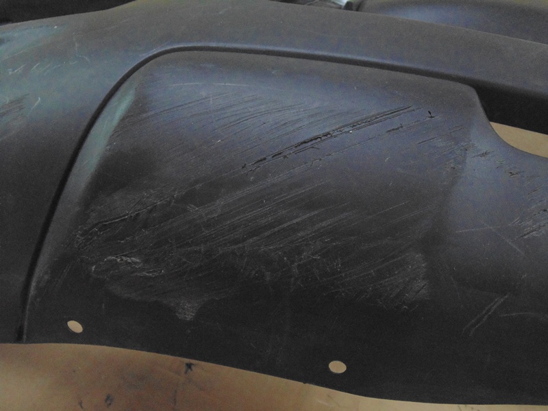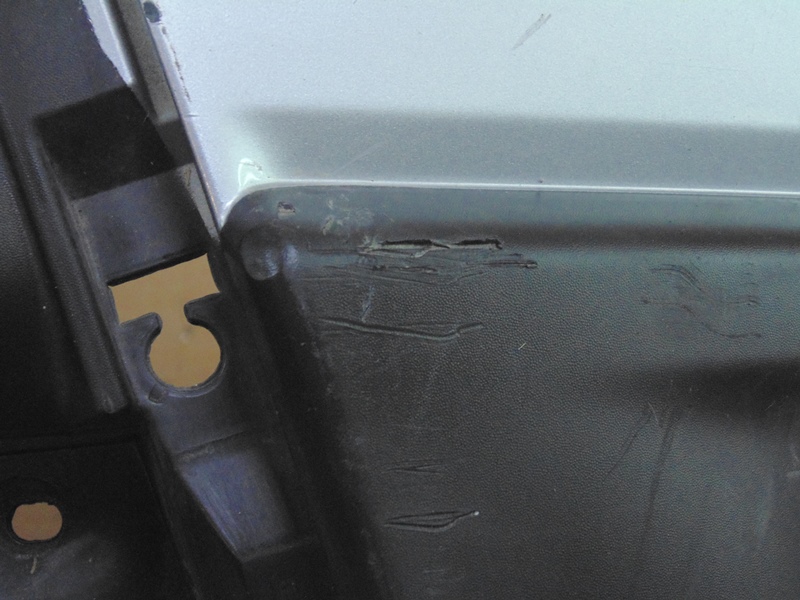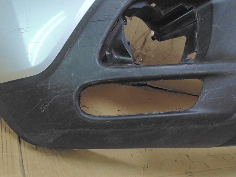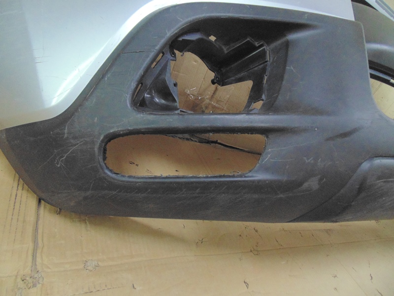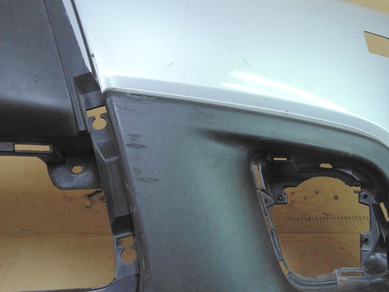 Описание: много грубых царапин, справа внизу вырезана заглушка, слева трещина на арке, все крепления целые. Без отверстий под датчики парковки. До рестайлинга.