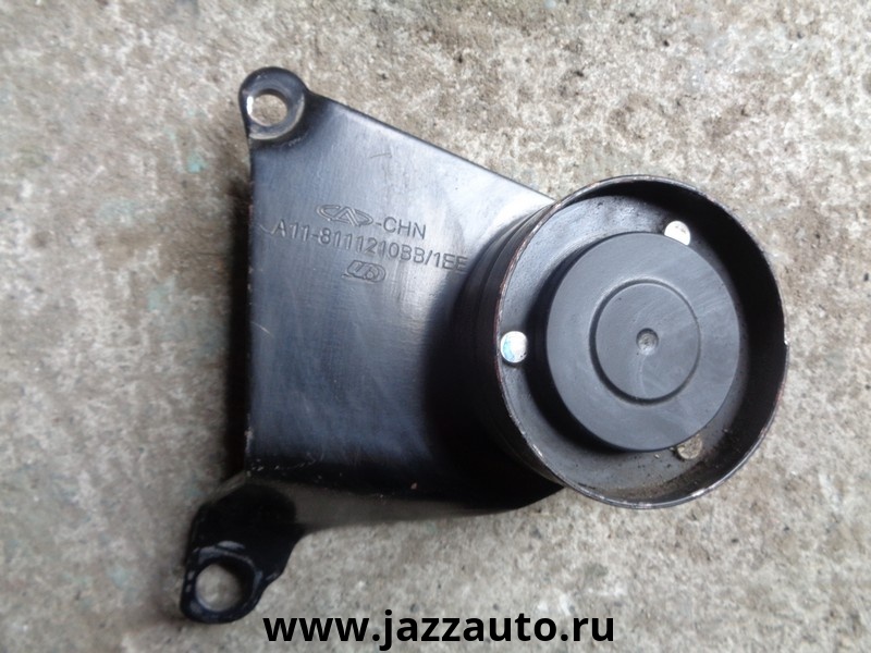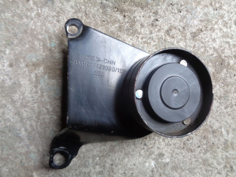 Chery Bonus A13 ролик паразитный с кронштейном ремня генератора б/у. Китай. Оригинальный номер A118111210BB / A11-8111210-BB . 2011-2014.