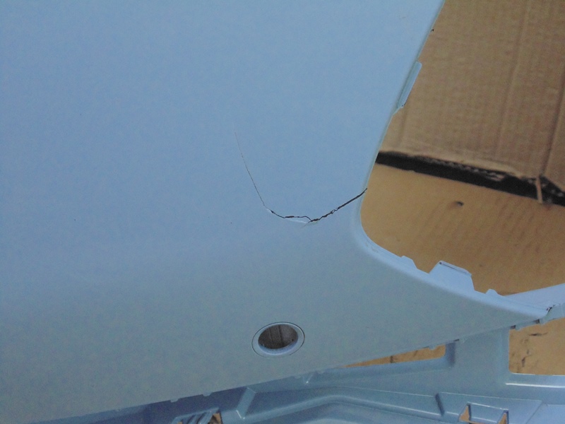 Описание: слева небольшая трещина, по центру деформация от хранения, справа дефект верхнего крепления.