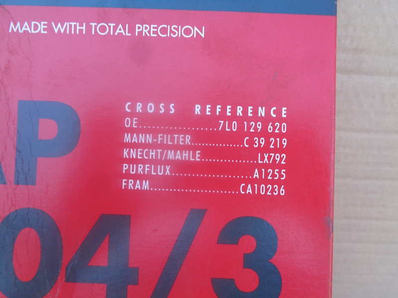 Volkswagen Touareg фильтр воздушный. Европа Filtron. Оригинальный номер AP0043 / AP 004/3 / 7P0129620 / 7P0 129 620 . 2002-2010.