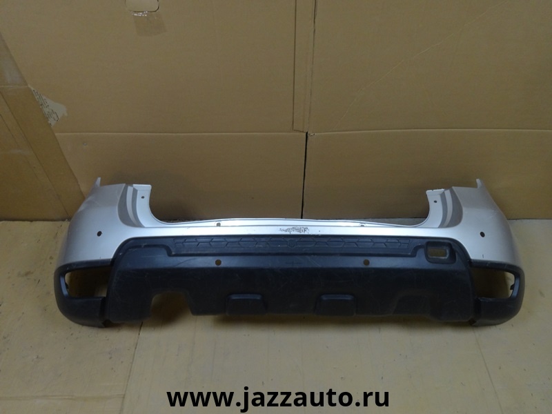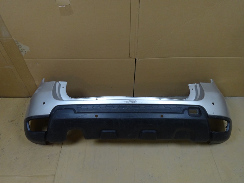 Renault Duster бампер задний без отверстий под накладку с отверстиями под датчики парковки б/у. Европа. Оригинальный номер 850221057R / 85 02 210 57R / 850225435R / 85 02 254 35R . 2015-2021.