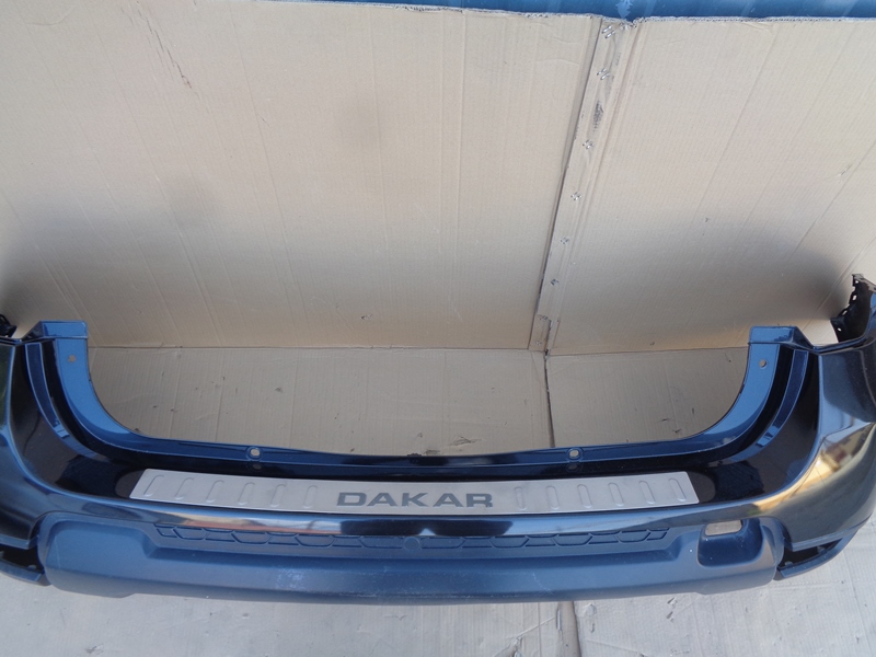 Renault Duster бампер задний без отверстий под накладку без отверстий под датчики парковки б/у. Европа. Оригинальный номер 850221057R / 85 02 210 57R / 850225435R / 85 02 254 35R // накладка хром Dakar . 2015-2020.