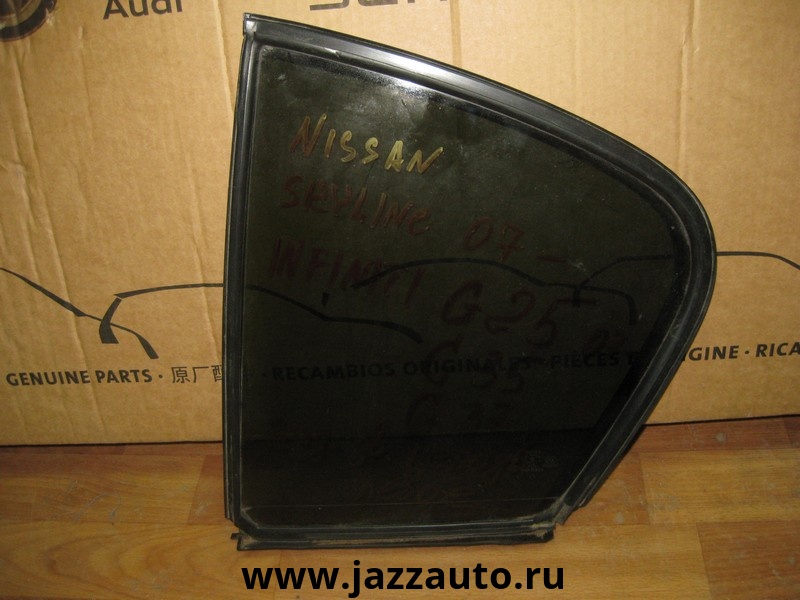 Infiniti G25/G35/G37 стекло двери задней левой глухое б/у. Япония. Оригинальный номер стекло 82263JK000 / 82263-JK000 // уплотнитель 82273JK000 . 2007-2015.