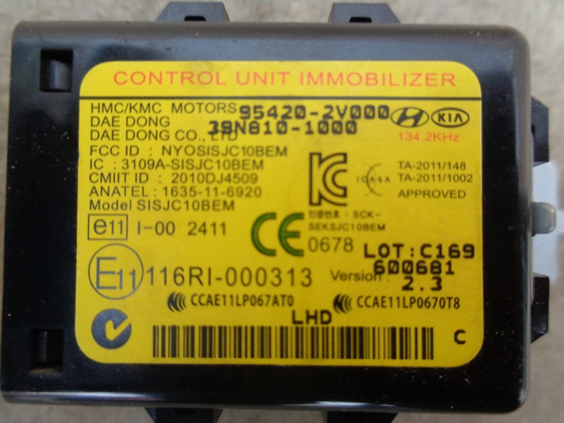 Hyundai Solaris иммобилайзер датчик блок б/у. Корея. Оригинальный номер 954202V000 / 95420-2V000 / 95420 2V000 . 2014-2017 .