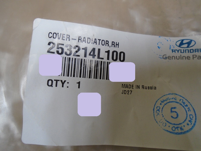 Hyundai Solaris воздуховод радиатора правый новый. Корея. Оригинальный номер 253214L100 / 25321-4L100 / 25321 4L100 . 2011-2017.