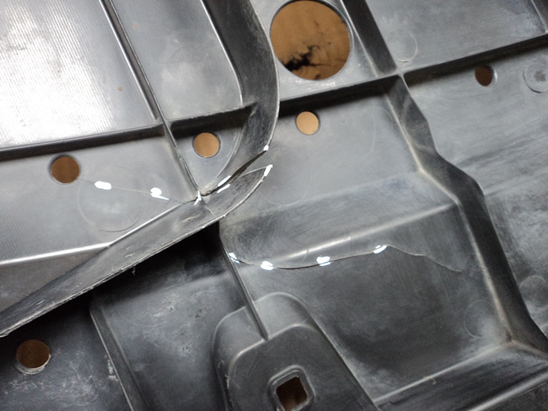 Описание: трещины с одной стороны. Пыльник двигателя защита.