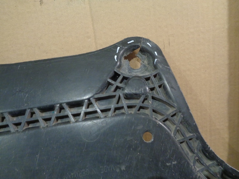 Описание: дефект одного крепления, отколот кусочек пластика.