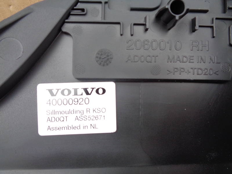 Volvo S90 накладка порога правого пластиковая с набором креплений нов . Европа. Оригинальный номер 40000920 / 40 000 920 / 2060010 // набор креплений 31650156 . 2016-2020 .