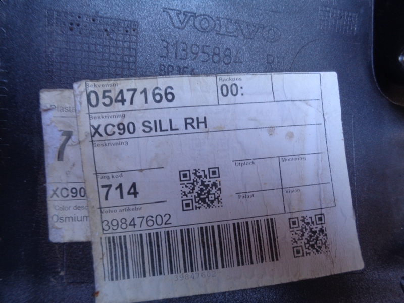Volvo XC90 накладка порога передняя правая наружная б/у. Европа. Оригинальный номер 31395884 / 31 395 884 / 39849311 / 39 849 311 / 31672371 / 31672377 / 31672375 . 2015-н.в.